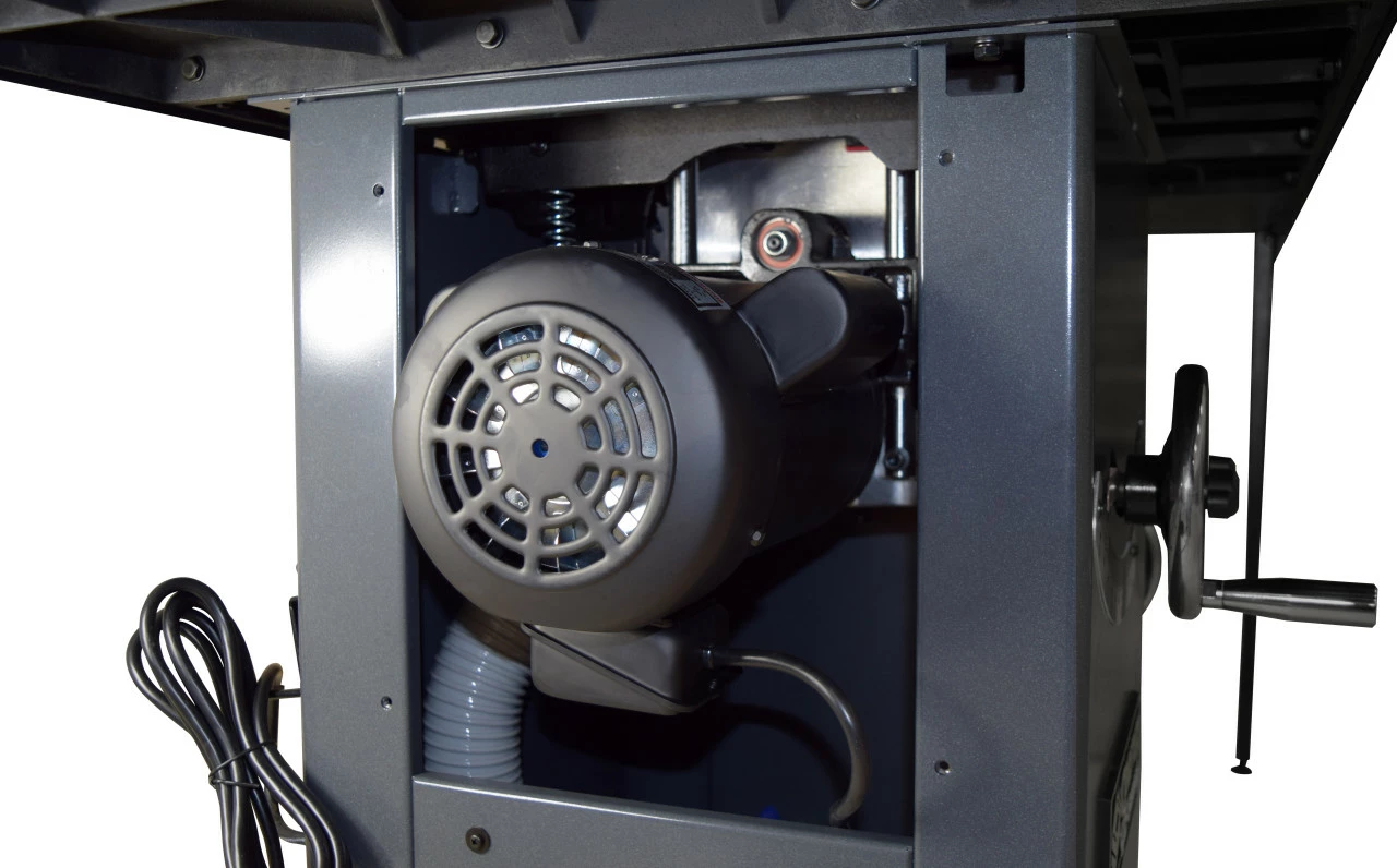 Starting with the inner working of this saw, you’ll find a newly designed, industrial cast iron trunnion system that is mounted to the cabinet. A powerful 3HP TEFC motor will tackle any wood you put through it and the heavy gauge cabinet stand will more than stand the test of time in any workshop.