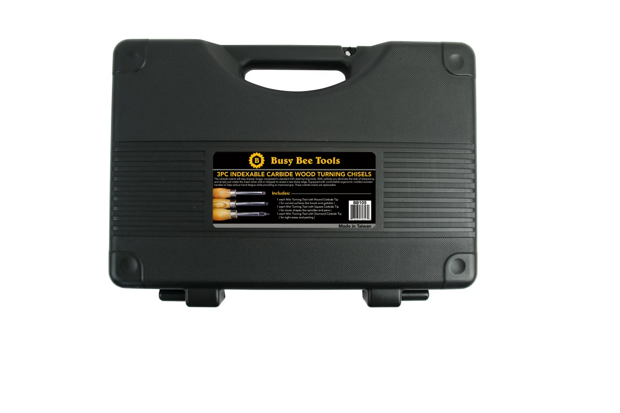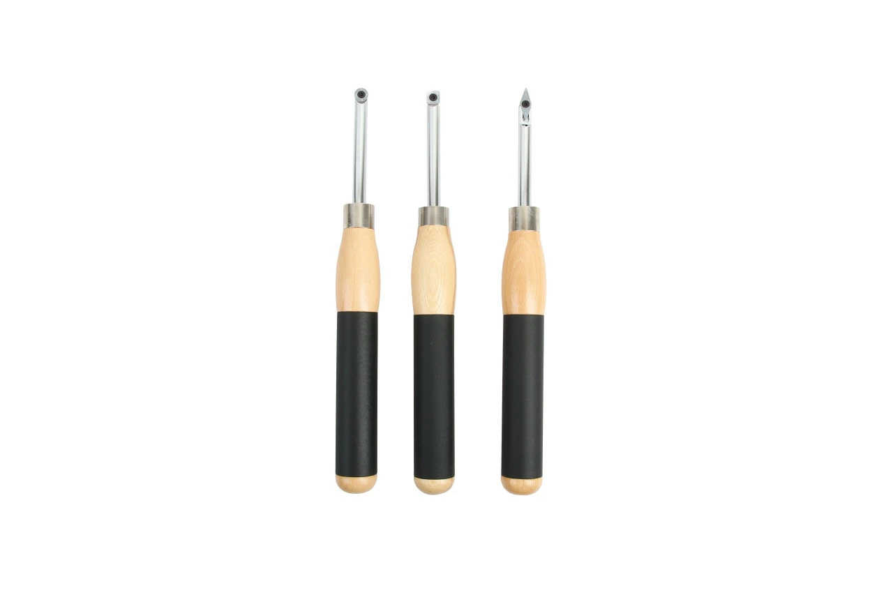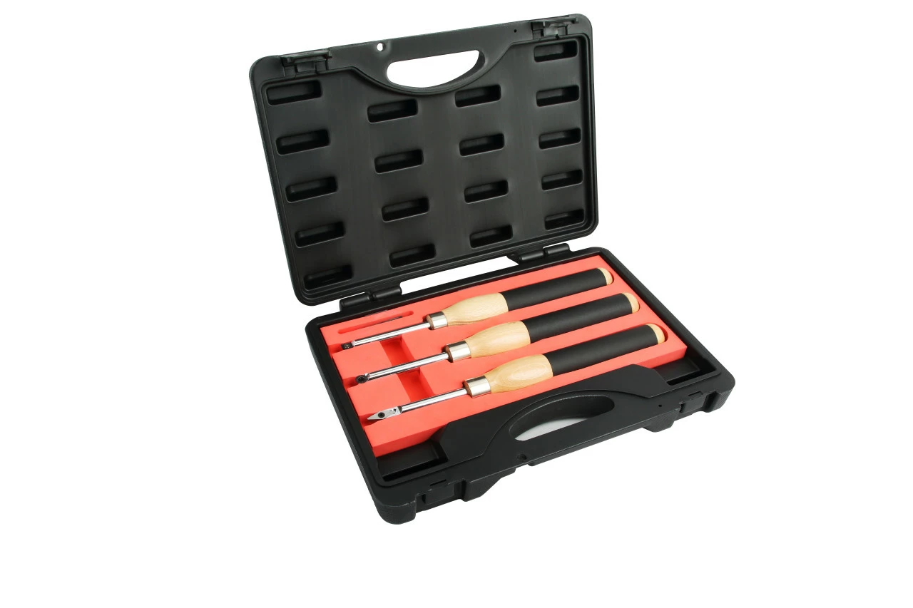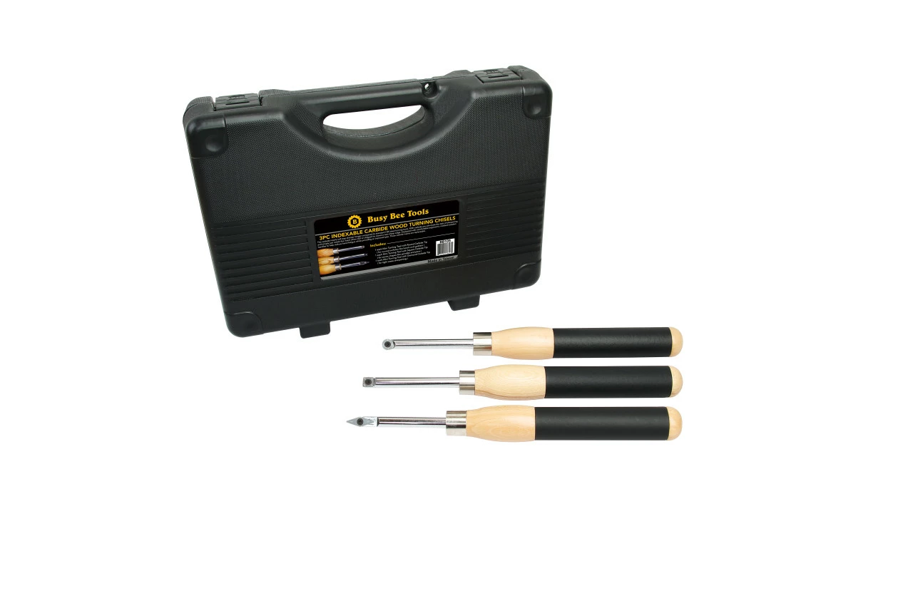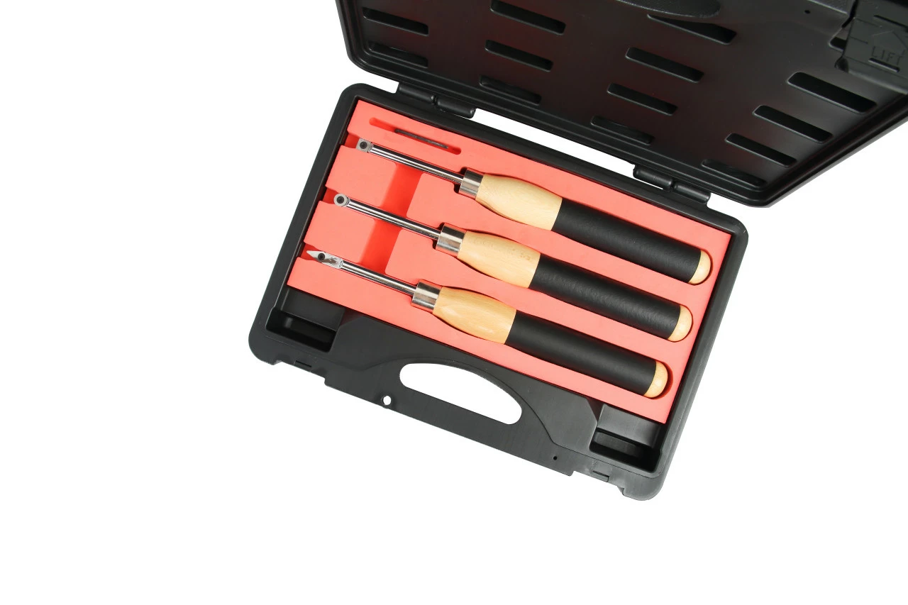 These turning chisels are a great alternative to traditional turning tools that require many hours of practise to master. They cut with a fine, scraping action that leaves a great surface only requiring fine sanding to finish. The carbide tips will stay sharper longer compared to standard HSS steel turning tools. When the cutter gets dull simply rotate the insert to reveal a fresh cutting edge and all inserts in this set are replaceable once they have been used up.
