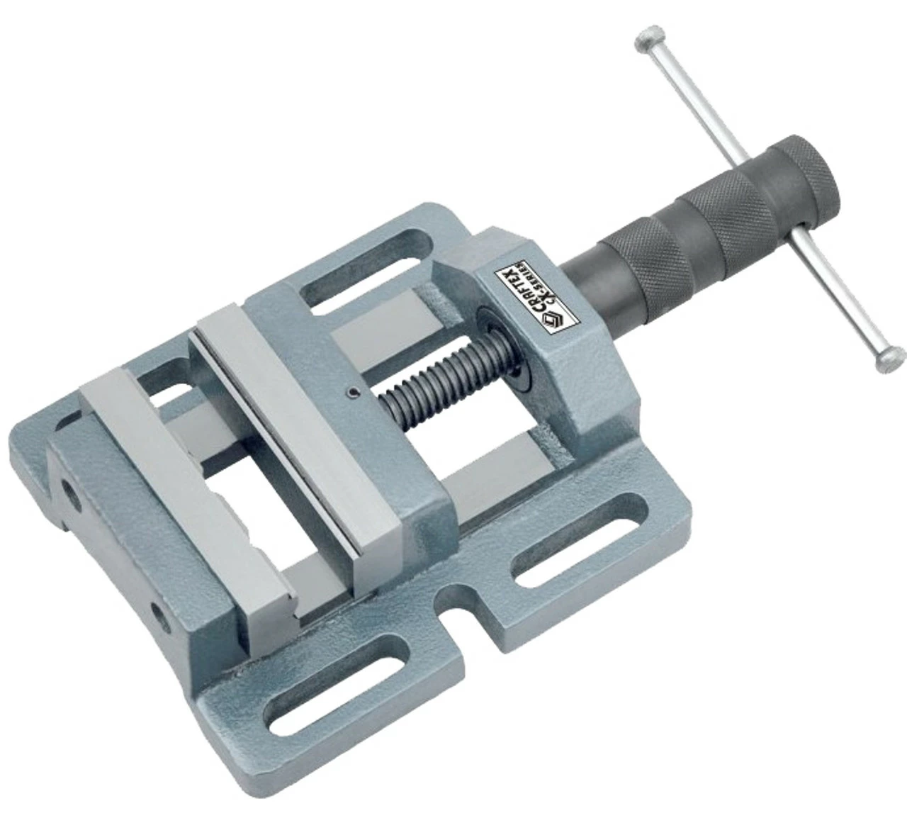 Manufactured from graded cast iron, these vises have a precision ground base and are equipped with a convenient unigrip mechanism. Longitudinal and transversal prism in the fixed jaw allow for firm gripping of various types of stock.