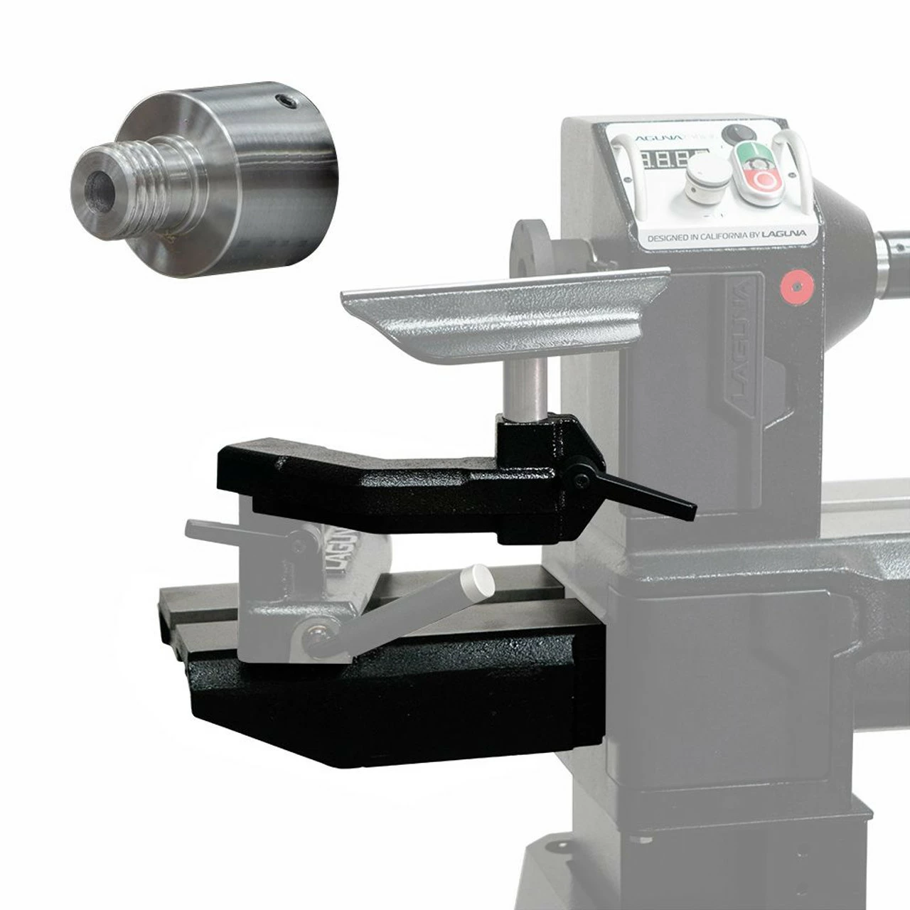 Extend your turning abilities of your lathe with this 10″ Outboard Table and Banjo for the Laguna Revo 1216 lathe. This cast iron bed extension includes tool rest extension and spindle adaptor with LH, RH 1″ x 8″ TPI.