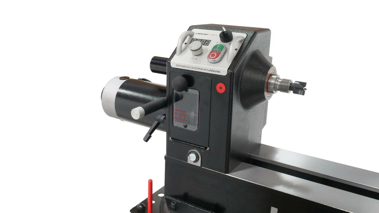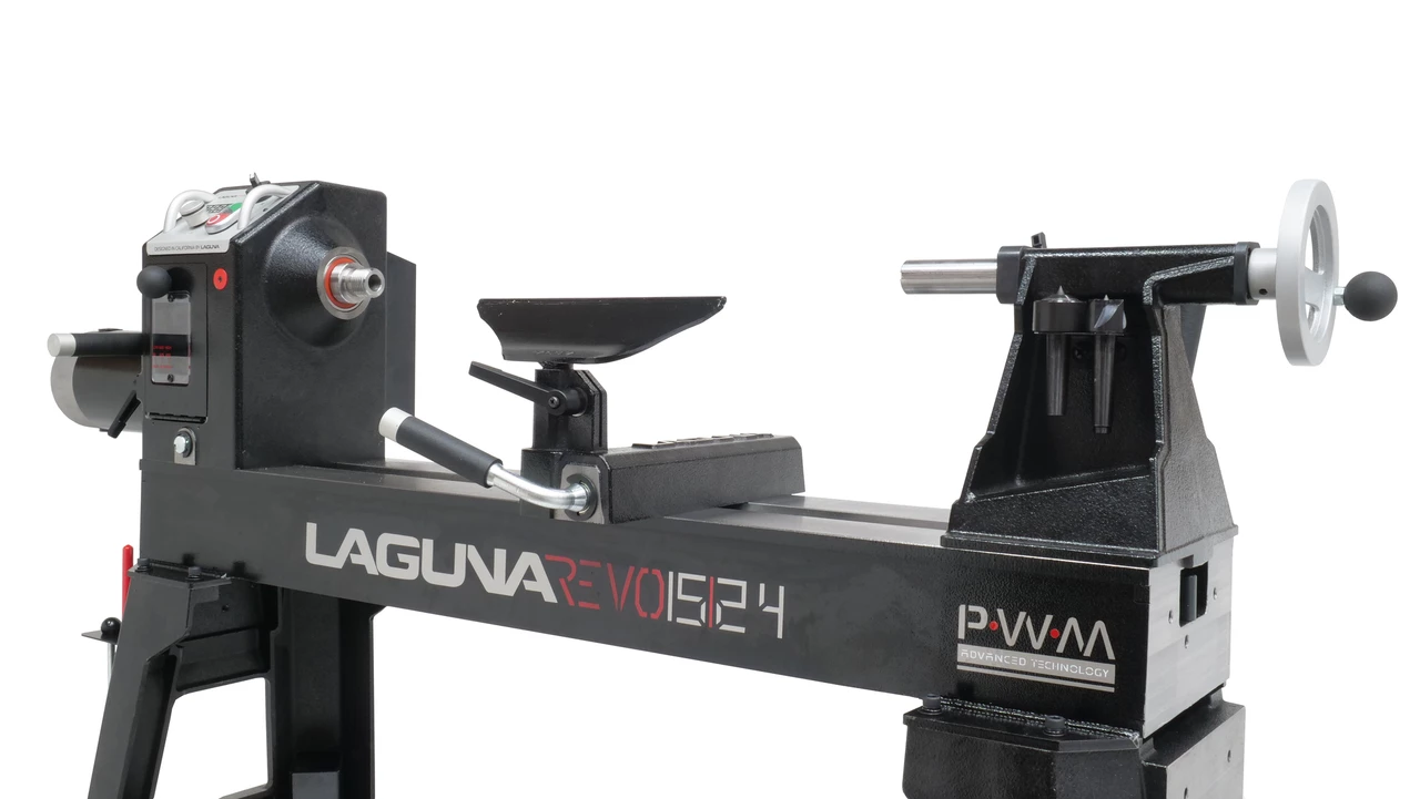 The PWM (Pulse Width Modulation) motor utilizes transistors for fast communication between the motor and controller. PWM controls stabilize the RPM and provide consistent torque (voltage) when using speeds at low RPM so you can turn with confidence at any speed on the Laguna REVO 15|24 Lathe.
