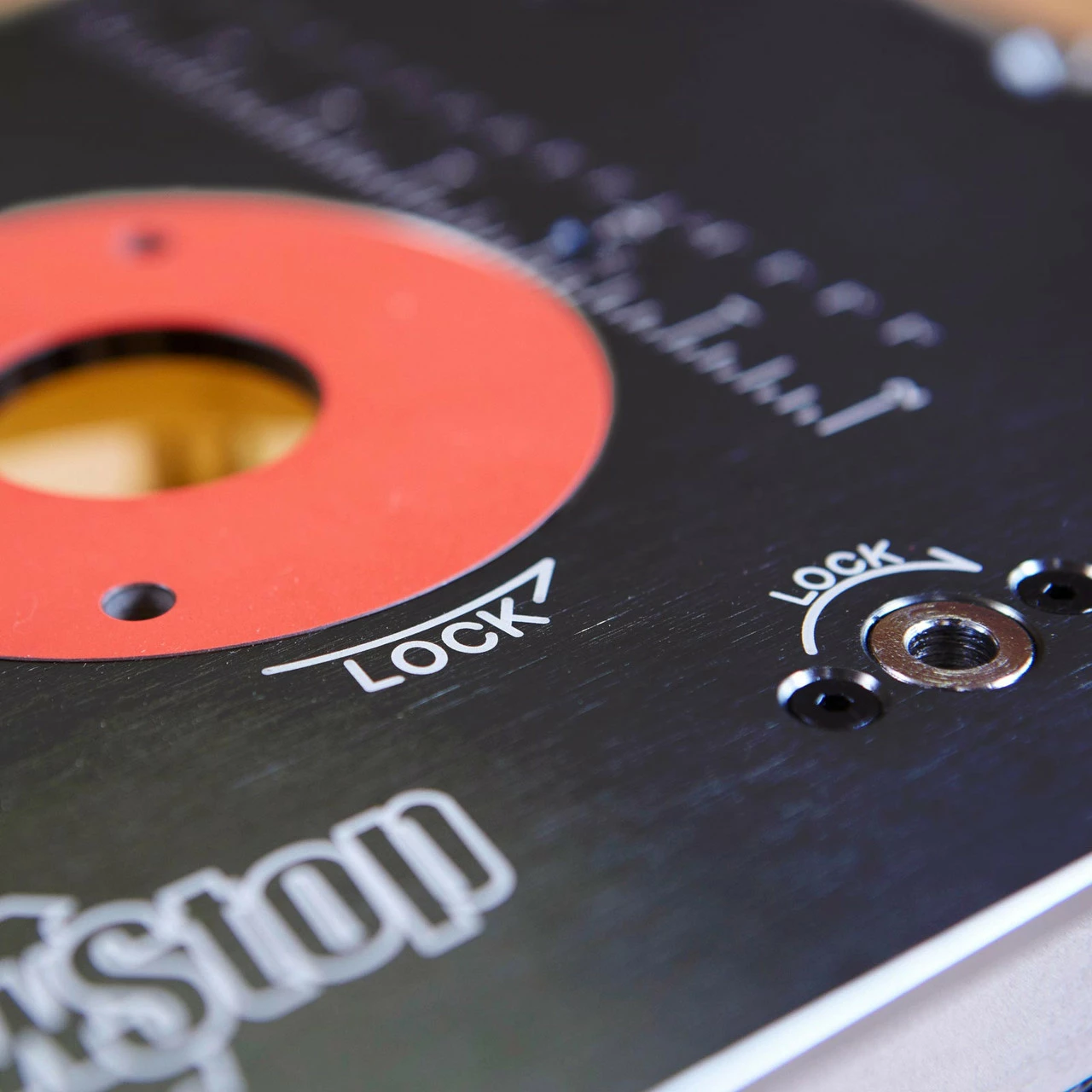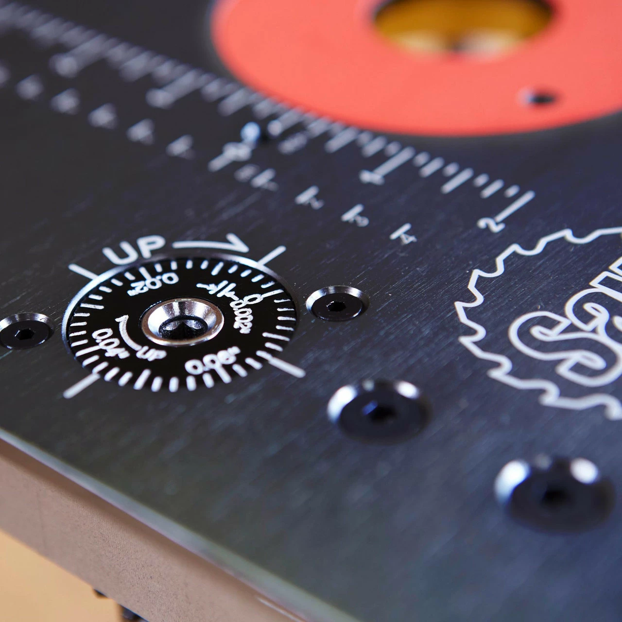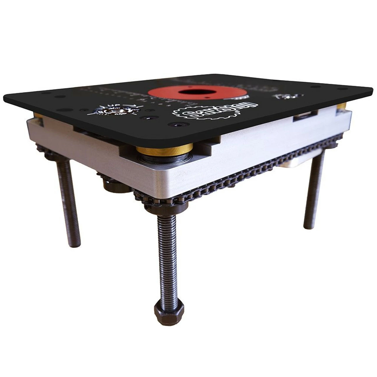 Built for heavy-duty precision, the SawStop Router Lift features a chain-synchronized four-post lifting system, positive lock, precision above-table elevation measurement and adjustments, and adaptive collars to fit multiple router sizes. 9.25″ x 11.75″ top plate fits perfectly into each SawStop Router Table.