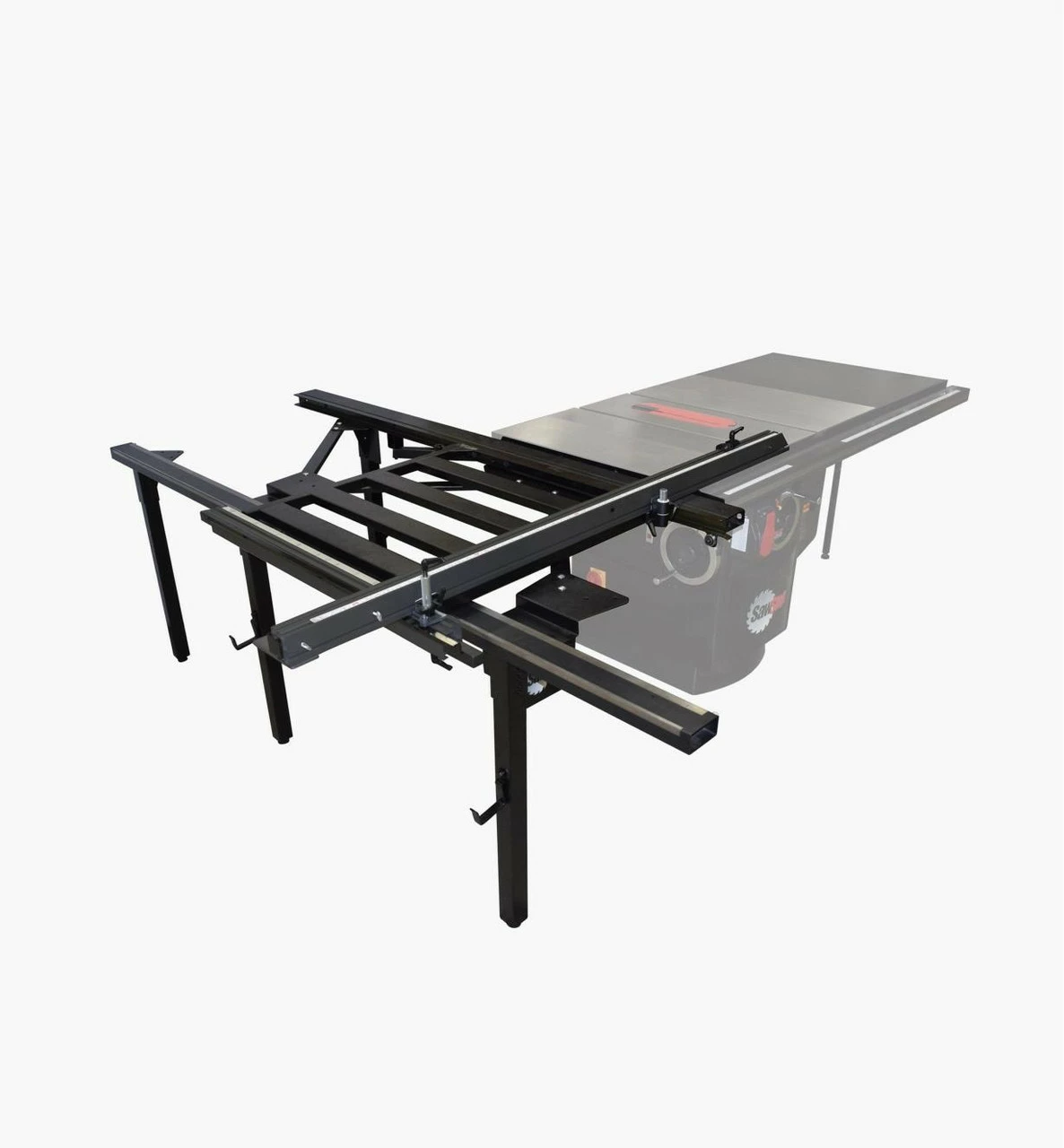 Engineered for the demands of the Industrial woodshop, the Large Sliding Table ensures easy, repeatable operation. Cut sheet goods and larger stock easily, with maximum control and sure measurement. A rigid steel frame and 14 sealed, steel bearings ensure a reliable, smooth glide, and maximum adjustability affords both traditional and Euro configurations for a maximum rip capacity of 70 inches. Includes detents at 0, 15, 22.5, 30 and 45 degrees.